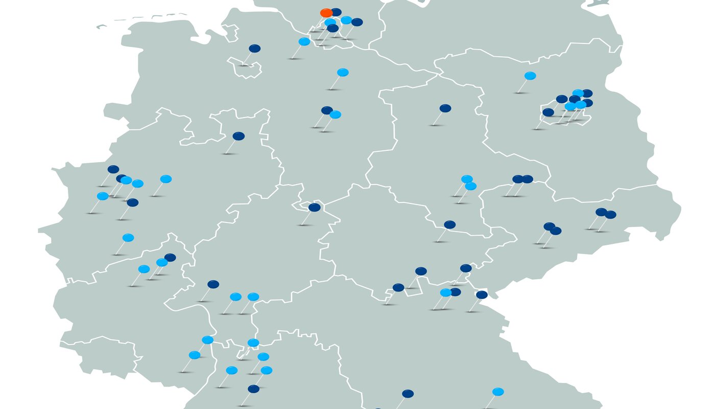 Mit 59 Standorten in ganz Deutschland und einem flächendeckenden Netz mobiler Techniker:innen bieten wir Ihnen einen Rundum-Service aus einer Hand – flexibel, zuverlässig und immer in Ihrer Nähe.